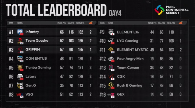 펍지주식회사(대표 김창한)가 플레이어언노운스 배틀그라운드(PUBG, 이하 배틀그라운드) 글로벌 이스포츠 대회 ‘펍지 콘티넨털 시리즈(PUBG Continental Series, 이하 PCS) 1 아시아’를 성황리에 마쳤다고 밝혔다. 6월 26일부터 7월 5일까지 2주간 매주 금요일, 일요일에 진행된 PCS1 아시아에는 한국, 일본, 중국, 차이니즈 타이페이에서 총 16개 팀이 참가해 총상금 20만달러를 놓고 치열한 매치를 펼쳤다. 우승의 영광은 대회 초반부터 선두권을 유지한 중국의 Infantry에게 돌아갔다. Infantr...