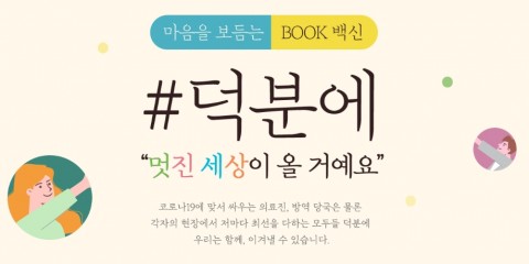 대한민국 대표 서점 예스24(대표 김석환)가 코로나19 극복을 위해 각자의 자리에서 최선을 다하는 모든 사람을 격려하는 도서 기획전 ‘BOOK 백신’을 열고, ‘덕분에 챌린지’ 행렬에 동참한다. 예스24는 기획전을 통해 오은 시인, 김하나 작가 등 예스24의 팟캐스트 ‘책읽아웃’ 출연진 및 도서 MD들이 선정한 추천 도서와 그 속에 담긴 마음을 보듬는 백신과 같은 문장들을 소개한다. 이에 더해 빠른 코로나19 종식을 위해 사회와 거리두기를 실천하고 있는 집콕족을 위한 추천 도서를 선보인다. 또한 코로나19의 위기 속에 고군분...