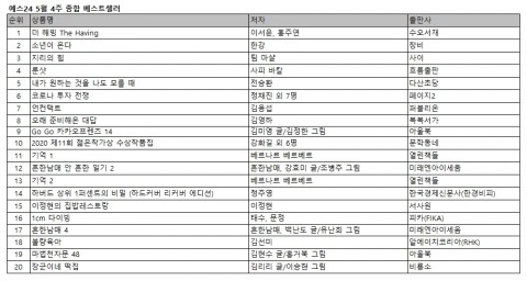 예스24 5월 4주 종합 베스트셀러에서는 부와 행운의 비밀에 대한 수만 건의 사례 분석과 성찰을 담은 <더 해빙 The Having>이 6주 연속 1위를 차지했다. 5·18 광주민주화운동 40주년을 맞아 그날의 참상을 담은 소설가 한강의 <소년이 온다> 특별한정판이 새로운 2위에 등극했다. 지리가 정치·경제에 미치는 영향력에 대한 이야기를 담은 <지리의 힘>은 전주와 동일한 3위를 유지했으며 외면받던 아이디어가 전쟁, 질병, 비즈니스의 위기를 승리로 이끈 사례를 담은 <룬샷>은 두 ...