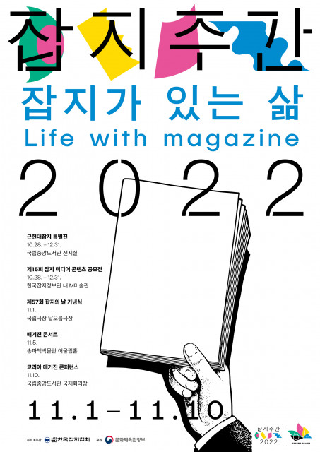 한국잡지협회(회장 백종운, 이하 잡지협회)가 잡지에 대한 인식 제고와 잡지 문화적 가치 확산을 위해 ‘잡지주간2022’를 11월 1일(화)부터 10일(목)까지 10일간 개최한다. 이에 앞서 문화체육관광부는 8월 9일(화) 제3차 정기간행물 진흥 5개년 기본계획(2022~2026)을 발표했고, 잡지협회는 정기간행물에 대한 사회적 인식을 높이기 위해 잡지의 날(11월 1일)이 포함된 기간을 잡지주간으로 지정했다. 잡지주간을 정한 것은 이번이 처음이다. 특히 올해는 잡지협회 창립 60주년이 되는 해로, 첫 잡지주간 지정이 더욱 의...