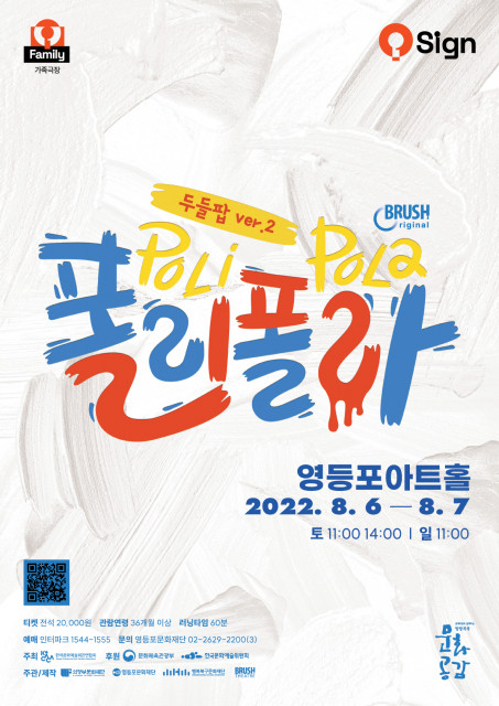 영등포문화재단(대표이사 강원재)은 8월 6일(토), 7일(일) 양일간 여름 방학을 맞아 온가족이 함께 즐길 수 있는 가족극 ‘폴리폴라’를 영등포아트홀에서 선보인다. ‘폴리폴라’는 주인공인 폴리가 폴라와 함께 비행기에 탑승해 상상과 꿈속을 탐험하는 이야기인 넌버벌 공연이다. 넓은 스크린 보드 위 펼쳐지는 드로잉과 프로젝션 맵핑은 낙서가 살아 움직이는 듯한 생동감을 보여주며 신디사이저와 전자드럼을 통해 신나는 라이브 연주를 함께 들을 수 있어 눈과 귀를 사로잡는 상상력이 가득한 공연이다. 브러쉬씨어터는 ‘두들팝’, ‘리틀뮤지션’...