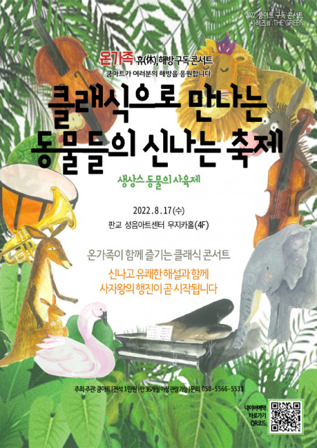 공연 예술 단체 쿰아트(대표 한혜리)가 공연 클래식 콘서트 월간 구독 서비스를 출시하고, 8월호 ‘클래식으로 만나는 동물들의 신나는 축제-생상스 동물의 사육제’ 발매 예약을 시작했다. 쿰아트는 클래식 공연 활성화를 목표로 ‘휴(休), 해방 월간 구독 콘서트’란 제목의 정기 구독 클래식 콘서트를 선보인다. 6월호 ‘여름’을 시작으로 12월호 ‘메리 크리스마스!’까지 월간 정기 발매되며, 매월 차별화된 주제로 월 1회 수요일 오전 11시 공연으로 관객들을 찾아간다. 특히 이번 8월호 주제는 여름 방학을 맞은 어린이와 학부모를 대...
