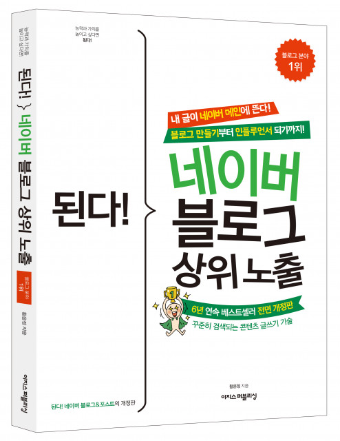 이지스퍼블리싱이 6년 연속 베스트셀러, 블로그 분야 1위 책 ‘된다! 네이버 블로그 상위 노출’(368쪽, 1만6500원)을 펴냈다. 2015년 첫 출간 이후 꾸준하게 사랑받아 온 ‘된다! 네이버 블로그&포스트’ 책이 2022년에 맞춰 업그레이드돼 ‘된다! 네이버 블로그 상위 노출’이라는 제목으로 돌아왔다. 이번 개정에서 내용 최신화 외에 추가된 부분은 다음과 같다. ① 블로그로 수익을 내고 싶은 사람을 위한 ‘블로그 수익 창출’ 내용 추가, ② 스마트에디터 2.0 서비스 종료를 반영한 최신 내용 수록, ③ 쇼핑, 인플루언서 ...