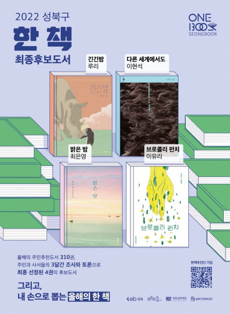 성북문화재단 성북구립도서관이 2022년 ‘올해의 성북구 한 책 최종후보도서’ 4권을 발표했다고 밝혔다. 주민과 사서가 함께 선정하는 성북구 한 책 특유의 선정 방식은 ‘지금 이웃과 나누고 싶은 마음’이 담겨 있어 더욱 눈길을 끈다. 성북구립도서관은 ‘성북구 한 책’을 선정하기 위한 첫 단계로 최종후보도서 4권을 우선 선정한다. 그 후에는 최종후보도서 4권을 두고 주민들이 주체적으로 참여하는 ‘성북구 한책추진단’과 다양한 프로그램(토론회, 작가와의 만남, 한 책더드림서비스)을 통해 최종 한 권을 선정한다. 2010년부터 시작...