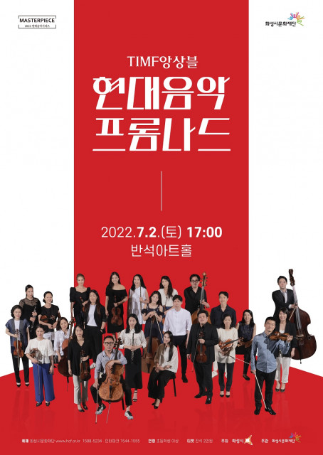 화성시문화재단(대표이사 김종대)은 TIMF앙상블의 ‘현대음악 프롬나드’를 7월 2일(토) 오후 5시 동탄복합문화센터 반석아트홀에서 개최한다고 27일 밝혔다. 통영국제음악제(TIMF)의 홍보대사이자 한국을 대표하는 현대음악 전문 연주 단체인 TIMF앙상블은 ‘2002 통영국제음악제 D100 연주회’로 첫걸음을 뗀 이후 현재까지 지속적으로 연주 영역을 넓히며, 매년 다양한 프로그램과 질 높은 연주로 관객들에게 풍요로운 만족감을 선사해왔다. TIMF앙상블이 선보이는 이번 공연은 미니멀리즘 양식의 대표 작곡가 스티브 라이히(Stev...