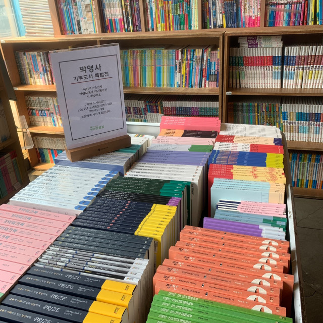 출판사 박영사와 박영스토리(피와이메이트)가 가정의 달을 맞아 아름다운 가게 헌책방 보물섬 측에 200권가량의 도서를 기부하고, ‘기부도서 특별전’을 진행했다. 도서 판매 금액은 소외계층 지원을 위한 희망나누기에 사용될 예정이다. 기부도서 특별전은 책의 지혜와 즐거움을 느낄 수 있는 자리를 마련해 많은 시민들이 박영사와 박영스토리(피와이메이트)의 다양한 도서를 접할 수 있도록 일일책방 형식으로 진행됐다. 올해 창사 70주년을 맞은 박영사는 법학, 경영학, 교육학, 심리학 등 다양한 분야의 대학 교재 및 전문 학술 서적을 출판하...