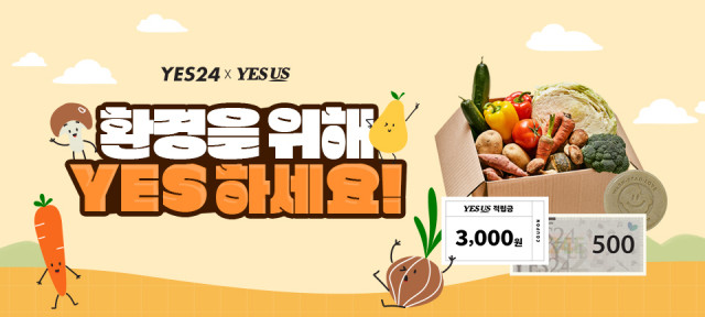 대한민국 대표 서점 예스24(대표 김석환)가 6월 환경의 달을 맞아 친환경 못난이 농산물 구독 플랫폼 예스어스(YESUS)와 손잡고 30일까지 ‘환경을 위해 YES하세요’ 이벤트를 실시한다고 7일 밝혔다. 예스24는 못난이 농산물 정기 구독 서비스로 친환경 및 지역사회 상생 가치를 추구하는 예스어스와의 협업을 통해 6월 환경의 달을 기념하고, 의미를 되새기는 다채로운 이벤트를 진행한다. 이번 이벤트는 ‘YES로 답하고 선물 받으실래요? YES! 퀴즈왕’, ‘지구에게 사랑을 표현해 주실래요? YES! 응원왕’, ‘SNS에서 참여...