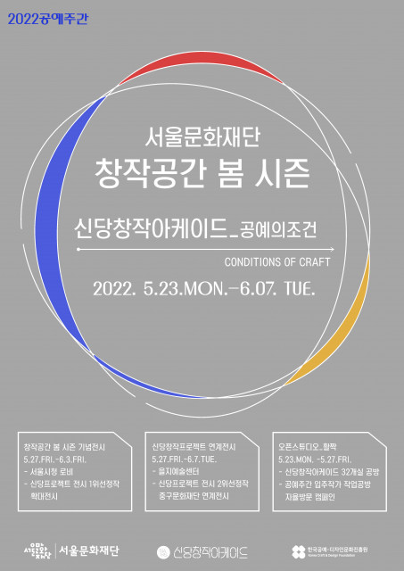 서울문화재단(대표이사 이창기) 신당창작아케이드가 현대 공예를 재정의하는 전시 ‘공예의 조건’을 6월 7일(화)까지 서울시청 로비, 을지예술센터, 신당창작아케이드 등 서울의 다양한 공간에서 진행한다고 24일 밝혔다. 서울문화재단이 봄을 맞아 추진하는 ‘창작공간 봄 시즌’의 하나로 진행되는 이번 전시는 ‘현대공예란 무엇인가’란 질문에 “공예는 ○○○이다”로 정의하는 프로젝트 전시다. 신당창작아케이드 13기 입주작가 33명을 대상으로 진행한 공모를 통해 총 7팀을 선정했다. 먼저 1위에 선정된 ‘열린괄호’는 ‘산업너머 공예너머’(...