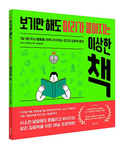 북라이프가 디지털 치매, 건망증 등 집중력과 기억력으로 어려움을 겪는 이들을 위해 MIT 뇌과학 연구 성과를 바탕으로 한 ‘16분할 사진 두뇌향상법’을 담은 ‘보기만 해도 머리가 좋아지는 이상한 책’을 출간했다. 보기만 해도 머리가 좋아지는 이상한 책 저자 요시노 구니아키는 ‘남녀노소 누구나 16분할 사진으로 훈련하면 좋아질 수 있음’을 강조한다. 그는 일본 두뇌 계발 분야 권위자로 수십 년간 MIT 뇌과학 연구 바탕의 ‘16분할 사진 두뇌 향상법’을 개발해 일본 최고의 집중력, 기억력 강사로 인정받았다. 이 방법으로 합격률이...