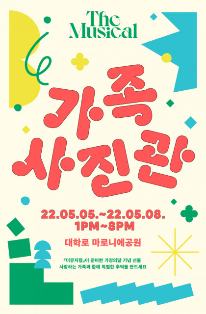 대한민국 대표 서점 예스24가 발행하는 국내 유일의 뮤지컬 전문 잡지 ‘더뮤지컬’이 5월 가정의 달을 맞아 5월 5일부터 8일까지 대학로 마로니에공원에서 ‘더뮤지컬 가족사진관: 케미를 찍어줘!’ 포토 이벤트를 열고 다채로운 행사를 진행한다. 사랑하는 사람과 특별한 추억을 남길 수 있는 ‘포토월 이벤트’가 진행된다. 더뮤지컬 잡지 표지처럼 꾸며진 포토월에서 가족·우정·사랑을 테마로 한 뮤지컬 △난쟁이들 △넥스트 투 노멀 △마틸다 △빈센트 반 고흐 △빌리 엘리어트 △키다리 아저씨 주인공들의 의상을 입고 기념사진을 찍을 수 있다...