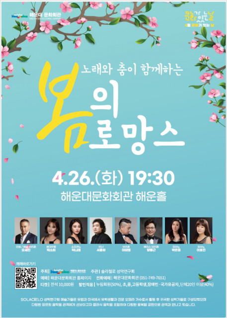 해운대문화회관, ‘4월 문화가 있는 날’ 노래와 춤이 함께하는 ‘봄의 로망스’ 개최