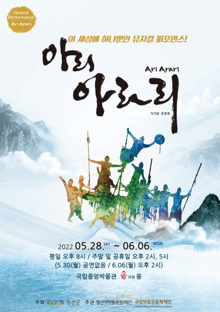 정선아리랑문화재단(이사장 전종남)이 국립박물관문화재단(사장 김용삼, 이하 재단)과 5월 28일(토)부터 6월 6일(일)까지 국립중앙박물관 극장 용에서 뮤지컬 퍼포먼스 ‘아리 아라리’ 공연을 상연한다고 22일 밝혔다. 뮤지컬 퍼포먼스 아리 아라리는 강원도 정선 지방의 민요이자 강원도 무형문화재 제1호인 ‘정선아리랑’의 설화를 담은 정선의 대표 공연이다. 서울에서 관객을 만나는 것은 2019년 국립국악원 예악당 공연, 2020년 웰컴대학로페스티벌 이후 세 번째다. ◇모두가 즐길 수 있는 가족 공연… 가정의 달 5월, 가족의 소중...