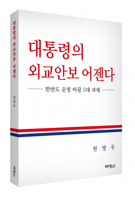 출판사 박영사는 기로에 선 대한민국 외교안보정책에 관한 제언서 ‘대통령의 외교안보 어젠다’(천영우 지음)를 출간했다. 이 책은 외교부 사무관에서 청와대 외교안보수석까지 치열한 외교안보 일선 현장을 누볐던 저자가 위기의 한국 외교를 진단하고 새 대통령이 알아야 할 외교안보 어젠다를 제시한다. 이 책의 저자인 천영우 전 외교안보수석만큼 대화와 대결이라는 남북관계의 양면과 한국 외교의 냉혹한 현실을 직접 경험하고 지휘해 본 사람도 드물 것이다. 노무현 정부 때 북핵 6자회담 수석대표(2006~2008)를 맡아 북한과의 대화를 이...