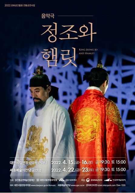 전통공연예술진흥재단(이사장 김삼진)이 제작한 음악극 ‘정조와 햄릿’이 4월 15(금)~16(토) 대전시립연정국악원, 22(금)~23(토) 세종예술의전당 무대에 오른다. 음악극 ‘정조와 햄릿’은 전통공연예술진흥재단이 2016년 제작한 기획공연으로 재연 때마다 완성도를 높여 2021년 초 ‘Film 정조와 햄릿’이라는 영화 필름 형식의 영상으로 온라인 페스티벌을 통해 관객과 만났다. 이후 ‘2021 의정부예술의전당 개관 20주년 기념 특별공연’ 선정, ‘2021 서울국제공연예술제’ 초청으로 작품성을 인정받은 바 있다. 전통공연예...