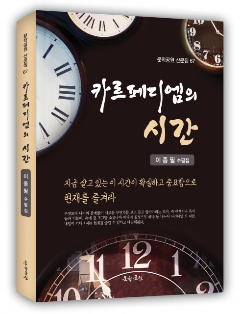 도서출판 문학공원은 종합문예지 스토리문학 2022년 신년 호로 등단한 이종필 수필가가 첫 수필집 ‘카르페디엠의 시간’을 펴냈다고 5일 밝혔다. 이 책은 그동안 이종필 수필가가 인생을 살아오면서 주변 인연들과의 만남, 그리고 생활 속 체험을 통해 느끼고 감동받은 생각의?편린들을 담았다. 산업화 이후 선진국 대열로 진입하는 과정에서 벌어진 최근의 정치, 경제, 사회적 사건들을 허심탄회하고, 조금은 비판적 시각으로 일갈한다. 이종필 수필가는 이 책 속의 ‘책을 펴내며’에서 “우리가 태어나서 자신의 이름을 갖고, 사회 속에서 자신의...