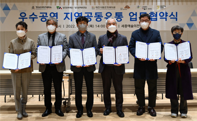전통공연예술진흥재단(이사장 김삼진)이 경상남도문화예술회관, 당진문화재단, 대전시립연정국악원, 세종시문화재단, 안동문화예술의전당과 ‘우수공연 지역 공동유통을 위한 업무협약’을 체결했다고 25일 밝혔다. 3월 24일(목) 세종시문화재단에서 진행된 업무 협약식에는 김삼진 전통공연예술진흥재단 이사장과 김종률 세종시문화재단 대표이사 등 주요 관계자가 참석해 상호 협력의 의의를 다졌다. 전통공연예술진흥재단과 5개 기관은 이번 업무 협약을 통해 △전통공연예술진흥재단의 제작·유통 사업 관련 각 기관의 공동 순회공연 추진 △각 기관의 공...