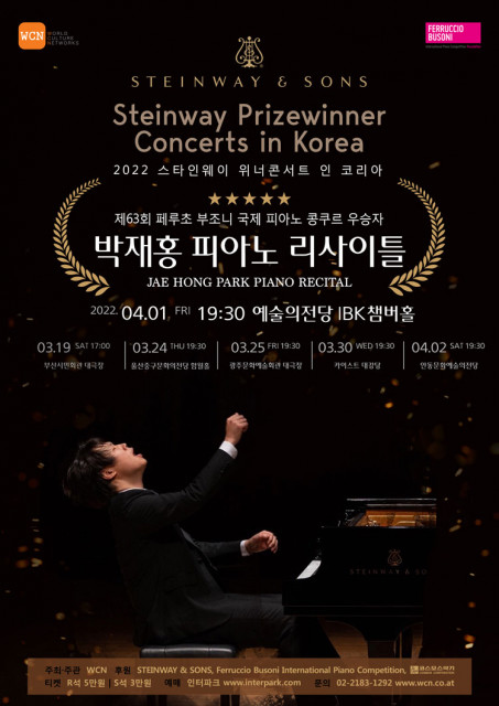 더블유씨엔코리아는 ‘2022 스타인웨이 위너콘서트 인 코리아- I 박재홍 피아노 리사이틀’이 4월 1일(금) 오후 7시 30분 예술의전당 IBK챔버홀에서 열린다고 15일 밝혔다. 건반 위의 황태자로 떠오른 피아니스트 박재홍의 이번 리사이틀은 세계적인 피아노 회사 스타인웨이가 국제 피아노 콩쿠르 수상자 가운데 가장 뛰어난 연주자들을 선발해 연주회를 개최하는 프로그램이다. WCN (대표 송효숙)은 2017년부터 한국 정식 파트너로 선정돼 ‘스타인웨이 위너콘서트 인 코리아’ 한국 공연을 맡았다. 2018년 부조니 콩쿠르 우승자 이...