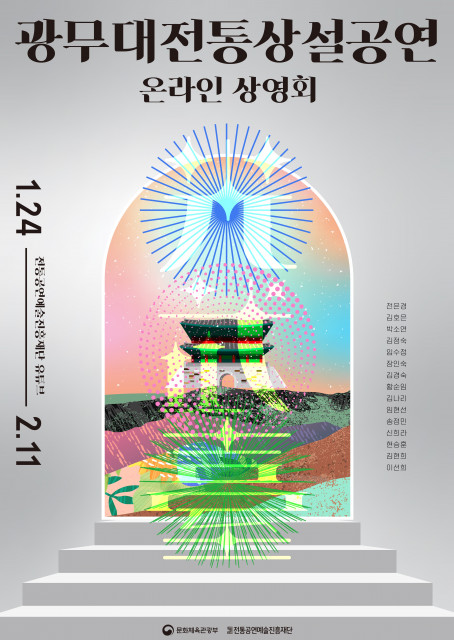 전통공연예술진흥재단(이사장 김삼진)은 1월 24일(월)부터 2월 11일(금)까지 3주간에 걸쳐 ‘광무대 전통상설공연’ 온라인 상영회를 개최한다. ‘광무대 전통상설공연’은 출연자 공모를 통해 선정된 15인의 중견 예술인들이 펼치는 순수 전통예술 공연이다. 창작작품과 신진예술인 중심으로 추진되는 지원사업의 한계를 넘어, 소외된 중견 예술인에 대한 지원 및 순수 전통예술에 대한 수요 확대를 위해 기획된 사업으로 중견 예술인들의 오랜 연륜으로 다져진 품격 있는 무대를 만나볼 수 있다. 이번 ‘광무대 전통상설공연’ 온라인 상영회 영상...