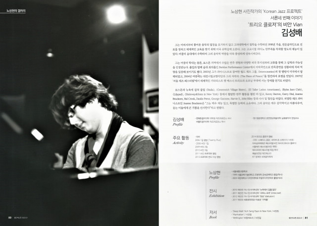 노상현 사진작가가 월간 색소폰을 통해 3년에 걸쳐 연재 중인 코리안 재즈 34회차의 주인공으로 비안(vian)을 선정했다. 고려대학에서 철학을 수학하던 비안(vian)은 어려서부터 품어온 음악에의 열정을 포기하지 못한 채 결국 1998년 가을, 체계적인 교육을 통해 전문 음악인으로서의 길을 갈 것을 결심하고, 도미길에 오르게 된다. 고교 시절 이미 피아노 연주곡을 작곡한 재능을 보인 그는 버클리 음대에서 수학하며 음악적 역량을 더욱 풍성하게 성숙시킨다. 버클리 학내는 물론, 보스톤 지역에서 수많은 연주 경험과 다양한 외국 뮤...