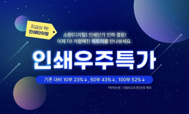 한국학술정보의 종합 인쇄 브랜드 북토리가 소량(디지털) 인쇄 금액을 전격 인하하며, 고객에게 더욱더 합리적인 가격의 인쇄 서비스를 제공한다고 13일 밝혔다. 고객이 주로 인쇄하는 출판 도서나 교재는 그 특성상 이미지, 표 등 다양한 자료가 첨부돼 컬러로 인쇄하는 경우가 많아 제작 단가가 높다. 여기에 적게는 최소 10부 이상 주문하는 경우가 대부분이라 인쇄비에 대한 고객들의 부담이 클 수밖에 없다. 북토리 담당자는 “언제 끝날지 모르는 코로나19 상황에서 북토리를 이용해 주시는 고객들에게 인쇄비에 대한 가격 부담을 조금이라도 ...