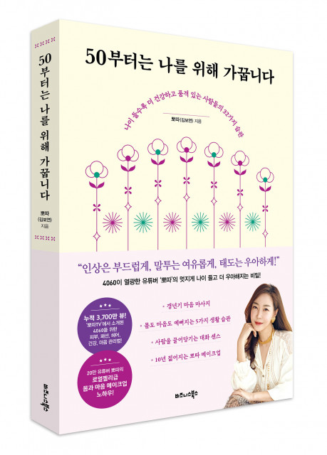 비즈니스북스가 20만 유튜버 뽀따의 몸과 마음을 가꾸는 습관을 담은 ‘50부터는 나를 위해 가꿉니다’를 출간했다. 4060 여성들은 흔히 나이 듦을 경험하며 미모와 건강이 예전 같지 않다는 상실감에 자존감과 자신감을 잃곤 한다. “이 나이에...”라고 되뇌며 몸과 마음에 생기도 열정도 생기지 않아 속상함을 느낀다. 그런 사람들에게 ‘50부터는 나를 위해 가꿉니다’의 저자 뽀따(김보연)는 “나를 가꾸기 시작하면 인생이 달라진다”고 말한다. 얼굴과 몸을 가꾸는 일이 마음도 더 젊게 만들고 성장시키는 힘이자 에너지가 된다는 것이다....