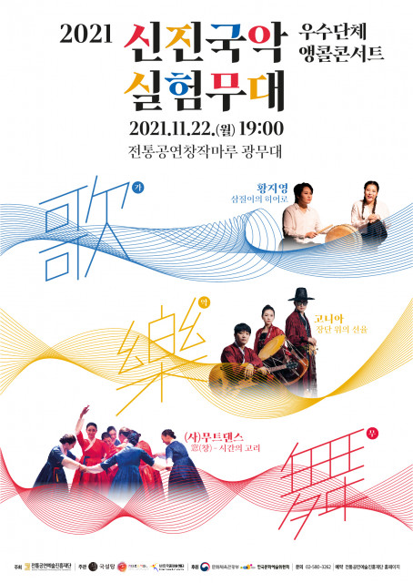 전통공연예술진흥재단(이사장 정성숙)이 주최하는 2021 신진국악실험무대 우수단체 앵콜콘서트가 11월 22일(월) 오후 7시 전통예술창작마루 광무대에서 펼쳐진다. 신진국악실험무대는 전통예술을 바탕으로 활동하는 신진 예술가를 발굴해 멘토링 및 레퍼토리 개발, 단독공연을 지원하는 사업으로 공모를 통해 주관기관을 선정해 진행한다. 올해는 16개 예술단체에게 22회의 단독공연을 지원했으며 성악·기악·무용부문 우수단체를 선정해 앵콜콘서트를 선보인다. 성악부분 선정 예술인은 황지영으로 여성국극, 발탈, 판소리, 전통연희를 넘나드는 음...