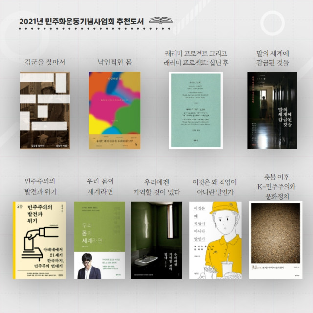 민주화운동기념사업회(이사장 지선, 이하 사업회)가 독서의 계절 가을을 맞아 ‘김군을 찾아서’(강상우 지음, 후마니타스 펴냄) 등 추천도서 9종을 발표했다. 민주화운동기념사업회 추천도서는 △ ‘김군을 찾아서’(강상우 지음, 후마니타스 펴냄) △‘낙인찍힌 몸’(염운옥 지음, 돌베개 펴냄) △‘래러미 프로젝트 그리고 래러미 프로젝트: 십 년 후’(모이세스 코프먼· 텍토닉 시어터 프로젝트 지음, 열화당 펴냄) △‘말의 세계에 감금된 것들’(홍세미 외 지음, 오월의봄 펴냄) △‘민주주의의 발전과 위기’(임혁백 지음, 김영사 펴냄) △...