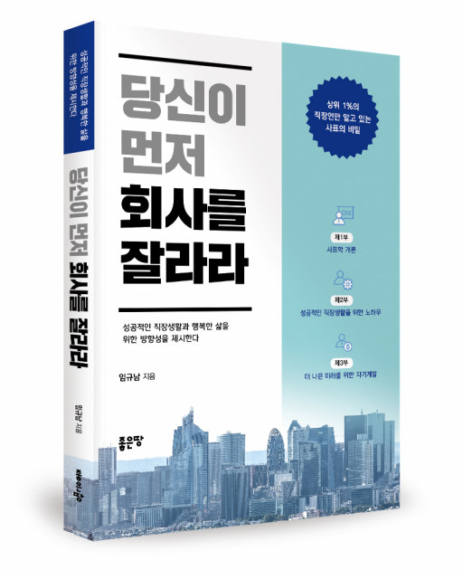 좋은땅출판사가 ‘당신이 먼저 회사를 잘라라’를 펴냈다. 이 책은 저자의 ‘회사가 키워 주는 신입사원의 비밀’에 이은 직장생활에 대한 책으로 직장인이라면 누구나 궁금해하고 알아야 할 내용들이 담겨 있다. “심장이 뛰는 곳으로 움직여라”, “지금 생각한 것을 실행에 옮겨라” 이 말들은 인생을 살아갈 때 중요한 이정표가 될 수 있다. 하지만 ‘회사’의 경우 조금 다르게 다가온다. 생계가 달려 있기 때문이다. 하루하루가 너무 힘든데 그래도 참아야 하는 걸까, 그럭저럭 다닐 만하니 맘 편하게 다녀도 되는 걸까, 이 회사는 언제까지 ...