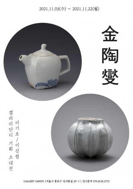 갤러리단디가 2021년 11월 3일부터 11월 22일까지 이기호·이상협 2인전 ‘금도섭(金陶燮)’ 전을 개최한다고 1일 밝혔다. 전시 장소는 서울시 종로구 인사동길 39-1로, 관람 시간은 오전 11시부터 저녁 7시(화요일 휴관)까지다. ◇전시 소개 인사동 갤러리 단디에서 11월 3일부터 11월 20일까지 도예가 이기호, 금속공예가 이상협의 2인전 ‘금도섭(金陶燮)’ 展이 개최된다. 이기호 작가는 서울과학기술대학교 대학원을 졸업한 뒤 계속해서 활발한 창작 활동을 이어왔다. 그는 개인·초대전을 서울, 대구, 일본 3곳에서...