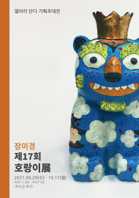 인사동 갤러리 단디에서 9월 29일부터 10월 11일까지 도예가 장미경 개인전 <호랑이>展이 개최된다. 그녀는 한국의 정신문화 형성에 깊은 영향을 미쳐온 샤머니즘을 흙이라는 제재를 통해 새롭게 바라본다. 경복궁 근정전의 월대 위에 놓인 ‘12지신 석상’ 및 ‘단청’ 그리고 상여에 쓰이는 ‘꼭두’라는 한국 고유의 인형 문화야말로 이번 전시의 주요 모티브이다. 장미경 작가는 자신을 호랑이 아티스트라 일컬을 만큼 호랑이 작업으로 널리 알려져 있다. 보통 민화에 등장하는 호랑이는 영험하고 신격화된 존재로 용맹함과 강인...