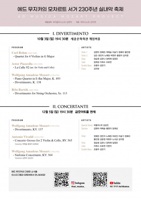 에드 무지카의 ‘Remembering Mozart’, 모차르트 서거 230주년 기념 실내악 축제
