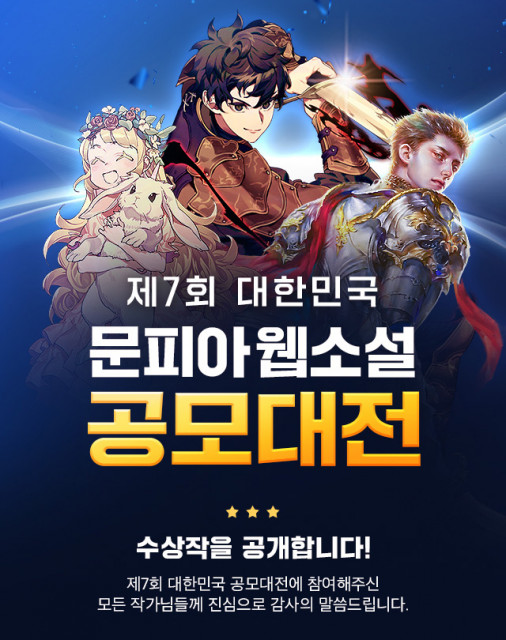 웹소설 연재 플랫폼 문피아가 한국웹소설작가협회와 공동 주최한 ‘제7회 대한민국 웹소설 공모대전’의 수상작을 발표했다. ‘제7회 대한민국 웹소설 공모대전’은 5월 12일부터 6월 20일까지 40일간 진행됐으며, 총 참여 작품 수 5500편, 참가자 수 4000명을 넘어서며 지난해에 이어 최대 참여 기록을 갈아치웠다. 올해 공모대전을 통해 첫 작품을 등록한 신인 작가는 지난해보다 500명 더 증가한 약 2100명. 첫 작품 등록 기준이며, 전체 참가자의 50%가 넘는 수치이다. 또한 완결 작품이 한 작품도 없는 작가의 참여율은 ...