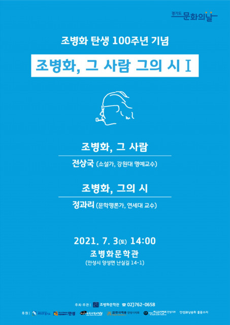 조병화문학관(관장 조진형)은 ‘조병화, 그 사람 그의 시 I’ 경기도 문화의 날 행사를 7월 3일(토) 오후 2시 안성과 인근 도시의 시민들이 참석한 가운데 문학관 교육실에서 성황리에 개최했다. 소설가 전상국은 조병화, 그 사람 강연에서 ‘꿈 · 멋 그리고 눈물’을 주제로, 문학평론가 정과리는 조병화, 그의 시를 ‘조병화 시의 수량적 방대함은 어디에서 비롯되었을까?’란 주제로 진행하며 시인 조병화 그 사람을 추억하고 그의 시의 발자취를 따라가 보는 소중한 시간이 됐다. 올해로 탄생 100주년을 맞는 조병화의 문단사적인 의미도...