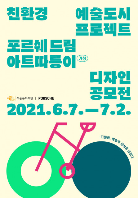 서울문화재단(대표이사 직무대행 유연식)은 포르쉐코리아(대표 홀가 게어만)와 함께 서울시 공공자전거 ‘따릉이’에 시민의 예술적 상상력을 더하는 ‘포르쉐 드림 아트 따릉이(가칭)’ 디자인 공모를 6월 7일(월)부터 7월 2일(금)까지 4주간 진행한다. ‘포르쉐 드림 아트 따릉이(가칭)’는 포르쉐코리아 사회공헌 캠페인의 기부금을 통해 진행하는 공공예술 프로젝트다. 이미 친숙한 공공자전거 ‘따릉이’에 시민이 제안한 디자인을 반영해 일상의 즐거움을 제공하고 자전거 이용 확대에 기여하기 위해 마련됐다. 공모 주제는 ‘친환경 도시 서울을...