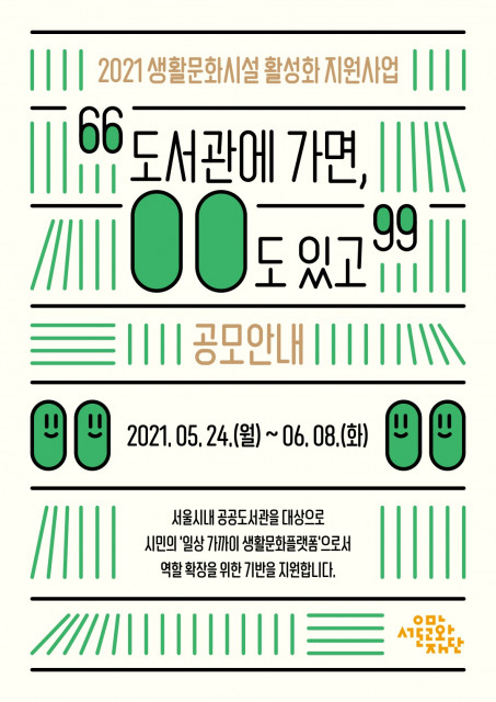 서울문화재단은 시민 누구나 일상에서 문화 활동의 주체가 될 수 있는 환경을 조성하고, 빠르게 변화하는 시민의 라이프스타일을 반영한 생활문화 사업을 연이어 공모한다. ◇생활문화시설 활성화 지원 공모 ‘도서관에 가면, ○○도 있고’(5월 24일~6월 8일) 서울시민의 삶과 밀접한 공공도서관을 대상으로 일상 가까이 생활문화플랫폼으로서 도서관 역할 확장을 위한 ‘도서관에 가면, ??도 있고’ 공모는 24일(월)부터 6월 8일(화) 오후 6시까지 진행한다. 이 사업은 생활문화플랫폼으로서 지속 가능한 운영 모델을 갖추기 위한 공간·...