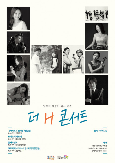 화성시와 화성시문화재단(대표이사 이종원)이 개최하는 하우스콘서트 ‘더 H 콘서트’ 4월 프로그램이 공개됐다. 관내 카페, 레스토랑, 도서관 등 일상 속 문화거점으로 찾아가는 공연인 ‘더 H 콘서트’는 3월 아벨 콰르텟의 공연을 시작으로 총 3회 공연이 성황리에 운영됐으며, 티켓 오픈 당일 전석 매진을 기록하는 등 시민들의 뜨거운 관심을 받고 있다. 공개된 4월 프로그램은 4월 20일 기타리스트 장하은, 장형섭 듀오를 시작으로 4월 22일 트리오 리베르떼, 4월 27일 문재즈밴드, 4월 29일 크로키키 브라더스와 림스 타악기 ...