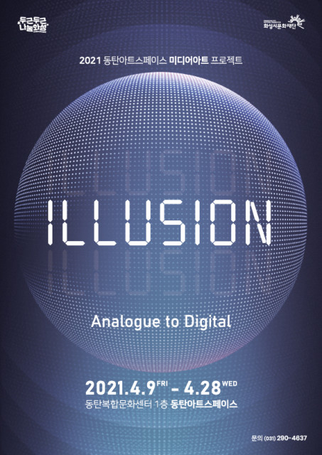 화성시문화재단(대표이사 이종원)은 ‘2021 동탄아트스페이스 미디어아트 프로젝트’의 세 번째 전시회 ‘ILLUSION : Analogue to Digital’을 4월 9일 개최한다. 이번 전시는 김민직, 김민호, 이승정 작가가 참여해 ILLUSION이라는 주제로 함께한다. ‘Analogue to Digital’이라는 부제는 과거부터 현재, 미래에 이르는 미디어아트의 모습을 담은 전시를 의미하며 기술과 예술 그리고 일상의 모호한 경계를 표현한 환상적인 작품을 통해 관람객에게 새로운 에너지를 전달하고자 한다. 이번 전시에 참여하...