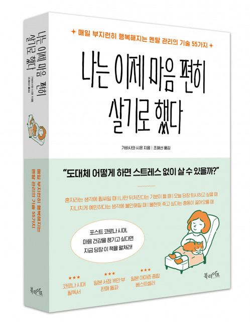 북라이프가 포스트 코로나 시대, 마음 건강을 챙겨야 하는 모두를 위한 스트레스 종합 백과사전, ‘나는 이제 마음 편히 살기로 했다’를 펴냈다. 현대 사회를 살아가는 사람들은 거의 매일 스트레스를 받는다고 해도 과언이 아니다. 2020년 코로나바이러스감염증-19가 전 세계에 창궐하면서 스트레스는 더욱 심해지고 있다. 2021년 1월에 발표된 ‘코로나19 국민 정신 건강 실태 조사’ 결과에 따르면 2018년에 비해 우울 위험군, 자살 생각률이 모두 큰 폭으로 증가했다(우울 위험군 2018년 3.8% → 2020년 12월 20%, ...