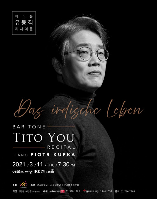슈투트가르트오페라 극장장인 알브레히트 풀만으로부터 “오페라 가수가 무대에서 보여줄 수 있는 성악 예술의 한계를 넘어섰다”고 극찬받았던 바리톤 유동직이 3월 11일(목) 예술의전당 IBK챔버홀에서 첫 리사이틀을 연다. 현 단국대학교 음악대학 성악과 교수인 유동직은 서울대 성악과, 이탈리아 파비아 티토 곱비 아카데, 밀라노 베르디 국립음악원을 졸업하고 독일 뮌헨 국립극장 영 아티스트 프로그램, 이탈리아 아르투로 토스카니니재단 최고연주자 과정을 수료했다. 뉴욕 메트로폴리탄 오페라 음악감독이자 마에스트로 제임스 레바인에게 발탁돼 19...