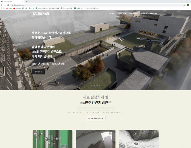민주화운동기념사업회(이사장 지선)는 2월 말 민주인권기념관(옛 남영동 대공분실)의 임시 운영을 종료하고 온라인 관람이 가능한 홈페이지를 오픈했다고 3일 밝혔다. 1970~1980년대 국가폭력의 상징이었던 남영동 대공분실은 이제 안전 보강 공사와 신축 공사를 거친 뒤 2023년이면 민주인권기념관(가칭)으로 정식 개관할 예정이다. 아픈 역사를 기억할 수 있도록 옛 남영동 대공분실의 본관과 5층 조사실의 원형 등은 최대한 보존하되, 전시와 교육의 장으로 기능할 수 있도록 새로운 공간을 추가로 조성한다는 계획이다. 민주화운동기념사...