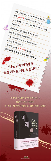 ‘고백’과 ‘왕복서간’의 작가, ‘미스터리 여왕’ 미나토 가나에의 데뷔 10주년 기념작 ‘미래’가 소미미디어에서 출간됐다. 첫 장편소설 ‘고백’(2007)은 제6회 서점대상을 수상하고 일본에서만 350만 부 이상이 판매되며 초대형 베스트셀러 작가 ‘미나토 가나에 신드롬’의 시작을 알린 작품이다. ‘미래’는 ‘고백’ 이후 10년, 미나토 가나에가 자신의 작가 인생 내내 집요하게 도전했던 ‘가족의 가치’와 ‘과거의 죄’라는 테마를 집대성해 집필한 소설로, 159회 나오키상 후보에 올랐다. ‘안녕. 나는 20년 후의 너, 서른 살...