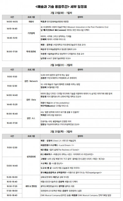 새로운 예술 성장을 위한 다양한 실험을 지원해 온 한국문화예술위원회(이하 예술위, 위원장 박종관)는 ‘예술과 기술의 현재와 미래’를 주제로 ‘예술과 기술 융합주간’을 2월 23일부터 25일까지 비대면 온라인 행사로 개최한다. 이번 예술과 기술 융합주간에서는 “예술과 기술의 융합, 어디까지 왔나”라는 질문을 던지면서 예술계, 기술계, 학계와 예술지원기관이 함께 예술과 과학 기술의 융합 현황을 살피고, 변화의 시대에 예술의 경계가 확장되는 지점에서 마주하는 새로운 고민과 가능성을 모색한다. 한국, 영국, 미국, 프랑스 전문가 8...