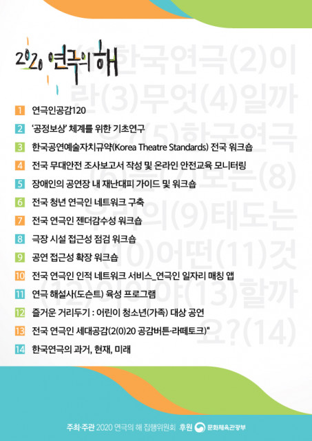 2020 연극의 해 집행위원회는 ‘2020 연극의 해’ 사업을 마무리하고 모든 사업 과정 및 결과를 담은 백서를 제작·출간한다고 밝혔다. 문화체육관광부가 2020년을 연극의 해로 지정함과 동시에 신종 코로나바이러스 감염증(코로나19) 유행이 시작되며 2020 연극의 해를 포함한 연극계는 힘든 한 해를 보냈다. 2020 연극의 해 집행위원회는 지금까지 연극계 행사와는 다른 성격으로 접근, 모든 세대를 포함하는 집행위원을 구성했고, 기존의 축제 방식이 아닌 연극계를 돌아보고 포스트 코로나 시대를 맞아 새로운 방향성을 제시하는...