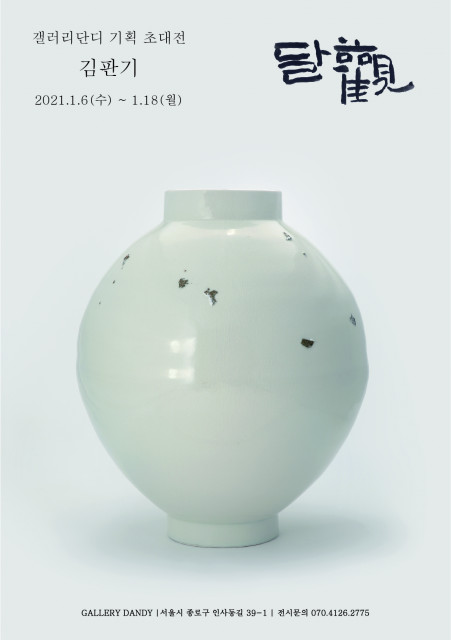 갤러리단디가 김판기 초대전 ‘월관月觀’을 개최한다. ◇갤러리단디 기획초대전 전시 제목: 김판기 초대전 <월관月觀> 전시 기간: 2021.01.06~2021.01.18 전시 장소: 서울시 종로구 인사동길 39-1 관람 시간: AM 11:00 - PM 7:00(화요일 휴관) ◇전시 소개 인사동 갤러리단디에서 1월 6일부터 1월 18일까지 도예가 김판기 초대전 ‘월관月觀’이 개최된다. ‘월관月觀’이란 단어 그대로 달을 바라본다는 뜻이다. 보름달의 둥근 원은 완전무결함과 강력한 힘, 완성, 성취의 이미지로서 원이 지...