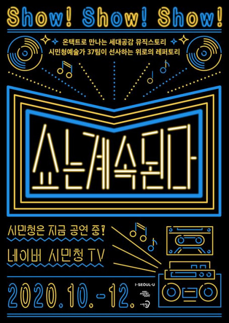 서울시는 코로나19로 문화예술 참여 기회가 줄어든 예술가와 시민의 갈증을 해소할 35개의 영상 작품 ‘쇼는 계속된다’를 네이버TV, 유튜브 등 온라인 플랫폼을 통해 선보인다고 밝혔다. 코로나19 사회적 거리두기로 2월부터 중단된 서울시 시민청 프로그램 ‘활력콘서트’를 대신해 기획된 것으로 10월 16일부터 12월까지 매주 금요일에 공개된다. 활력콘서트에 참여하는 시민청예술가는 2013년부터 공개오디션을 통해 선발해 운영하고 있다. 아마추어와 전문 예술가들이 함께 협업해 클래식, 재즈, 국악, 무용, 페이스페인팅 등 총 500...
