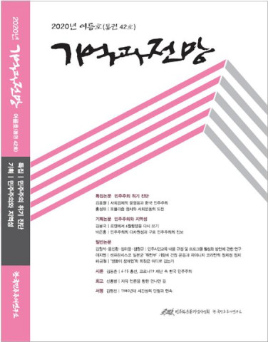 민주화운동기념사업회는 민주주의 전문학술지 ‘기억과 전망’제42호를 발간했다. ‘기억과 전망’은 2002년 1호 발간을 시작으로 국내외 민주주의를 주제로 한 논문을 게재하는 학술지다. 연 2회 발간되며 한국연구재단에 등재돼있다. ◇코로나19 재난 속 4.15 총선 분석한 김동춘 소장의 시론 2020년 전반기를 특징지은 코로나19의 확산과 제21대 국회의원 총선거를 다룬 ‘4.15 총선, 코로나 재난 속 한국 민주주의: 국가와 정당, 그리고 시민사회’에서 김동춘 소장은 총선을 기점으로 한 분석과 비판 그리고 과제를 제시했다. ...