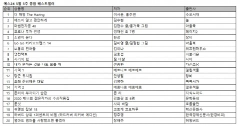 예스24 5월 5주 종합 베스트셀러에서는 부와 행운의 비밀에 대한 수만 건의 사례 분석과 성찰을 담은 <더 해빙 The Having>이 7주 연속 1위에 오르는 기염을 토했다. <나는 나로 살기로 했다> 김수현 작가의 4년 만의 신작 <애쓰지 않고 편안하게>가 새롭게 2위에 올랐다. 만화를 통해 재미있게 한자를 익힐 수 있는 마법 천자문 시리즈의 신간 <마법천자문 48>은 열여섯 계단 상승해 3위에 등극했다. 팟캐스트 ‘경제의 신과 함께’와 ‘삼프로TV’에 출연한 경제분석가와 전문 투자...
