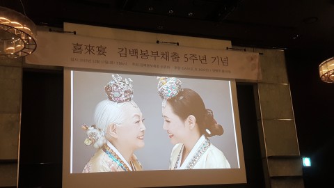 김백봉부채춤보존회가 17일 부채춤의 이북5도무형문화재 지정 5주년 기념식을 서울 더 플라자 호텔 22층 다이아몬드홀에서 성황리에 마쳤다고 밝혔다. 이날 2014년 평안남도 무형문화재 제3호로 지정된 것을 기념하여 김백봉부채춤 원형 공연, 기념식, 토크콘서트 등이 진행됐다. 기쁨이 오는 잔치라는 뜻의 ‘희래연(喜來宴)’을 주제로 열린 이날 행사에는 부채춤의 창시자인 김백봉 대한민국예술원 회원(문화체육관광부)과 부채춤 예능보유자(인간문화재)인 안병주 경희대 무용학부 교수를 비롯하여 보존회 전승자와 문화예술·무형유산 관계자, ...