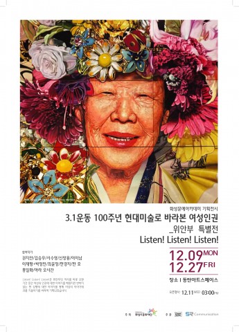화성시문화재단(대표이사 최형오)은 3·1운동 100주년을 기념하여 ‘현대미술로 바라본 여성인권-위안부 특별전’을 12월 9일부터 27일까지 동탄복합문화센터 동탄아트스페이스에서 개최한다. 이번 전시는 미국 최초로 건립된 ‘평화의 소녀상’이 있는 글렌데일(Glendale)시에서 기림일(정부가 지정한 일본군 위안부 피해자 기림의 날) 기념으로 전시한 작품들 중 현대미술로 재해석한 위안부 이야기를 담은 작품과 새로운 작품을 함께 선보인다. 그동안 우리가 단편적으로 접근했던 그녀들을 또 다른 시각으로 만날 수 있도록 기획된 전시다. ...