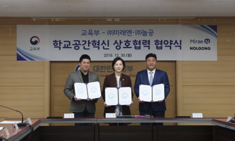 교육출판전문기업 미래엔은 교육부 및 게임기반 교육콘텐츠기업 놀공과 유은혜 사회부총리 겸 교육부 장관, 김영진 미래엔 대표이사 등 주요 관계자가 참석한 가운데 12월 30일 정부서울청사에서 ‘학교공간혁신사업(이하 혁신사업)’ 사용자 참여형 수업 혁신 3자 업무협약을 체결했다. 미래엔은 교육부의 ‘혁신사업’이 단순히 노후화된 학교시설 개선을 넘어 학교 공간을 재구성하고 미래의 교육 문화를 만들어 가는 과정이라는 취지에 깊이 공감하여 그에 맞는 교과과정과 연계한 사용자 참여형 수업 혁신 콘텐츠를 제공하는 데 뜻을 같이했다. 그동안...